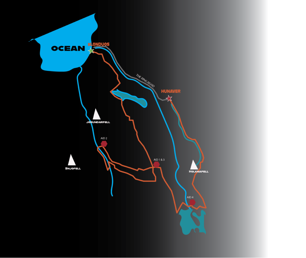 The North Bound 175, held on Saturday, this route condenses the shorter routes from Hveraviller Days Two and Three into a single fast-paced gravel race, offering a competitive yet accessible entry into the North Bound experience. The race starts in the Old Town of Blรถnduรณs, taking a lap around the back of Svinavatn (Pig Lake) before heading into the highlands -wild horse country. You will then drop into the Vatsdular Valley, home to The Vatnsdรฆla Saga.